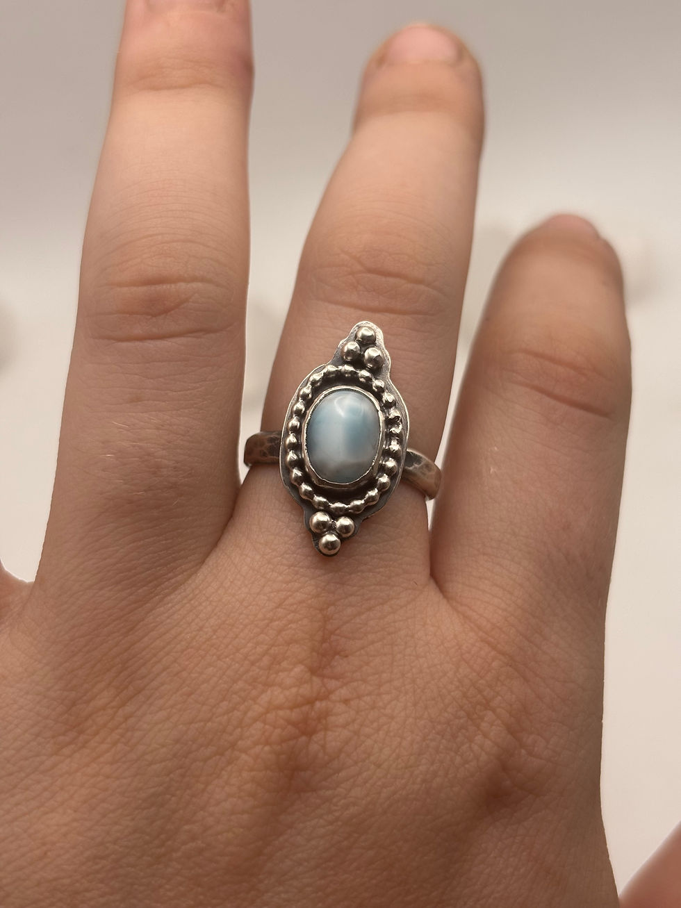 Sterling Silver Angelite and Sodalite Ring -- Size 8.5